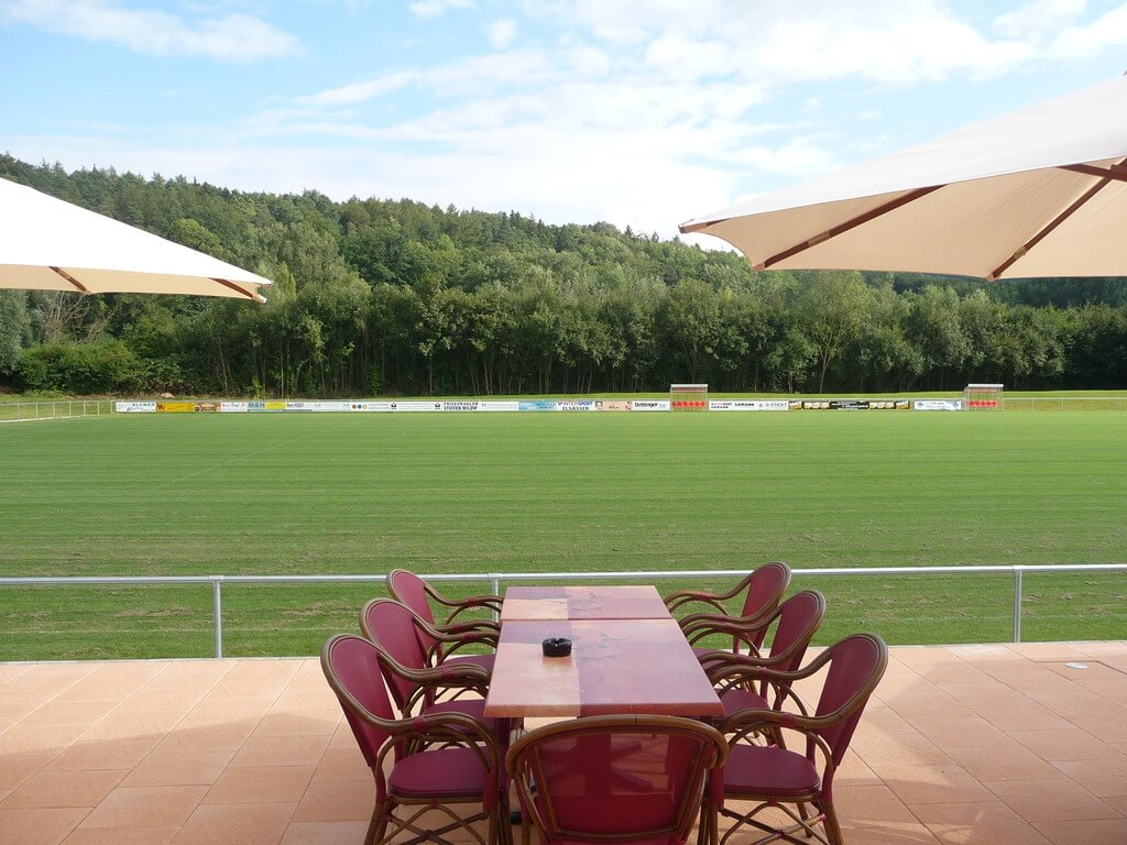 Kinder können sich auf dem von der Terrasse genau einsehbaren Sportgelände austoben und von der Terrasse im Blick gehalten werden. Der Viktoria Sportpark liegt genau neben dem Enztalradweg und bietet sich auch für Radfahrer optimal an, eine kurze oder auch längere Rast einzulegen.